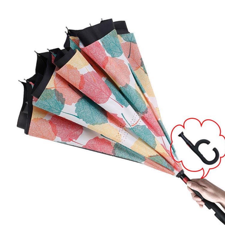 傘を閉じると濡れた面が内側になるため、水滴の飛び散りが少ない逆折り式長傘です。