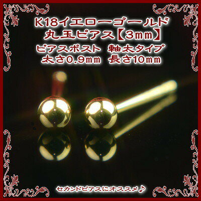 丸玉ピアス K18イエローゴールド丸玉ピアス 【3mm】【ピアスポスト軸太タイプ 太さ0.9mm長さ10mm】です。