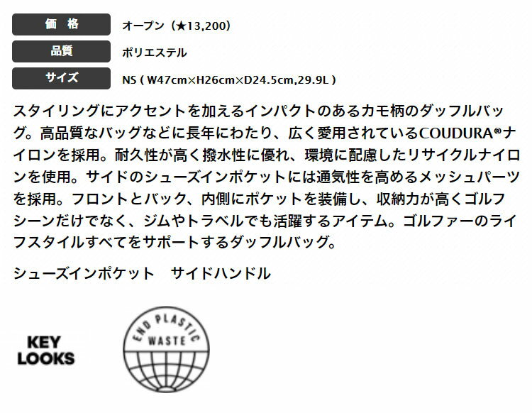 2022年 モデル adidas アディダス ゴルフ CB574 シューズポケット付き カモ柄 ダッフルバッグ ボストンバッグ