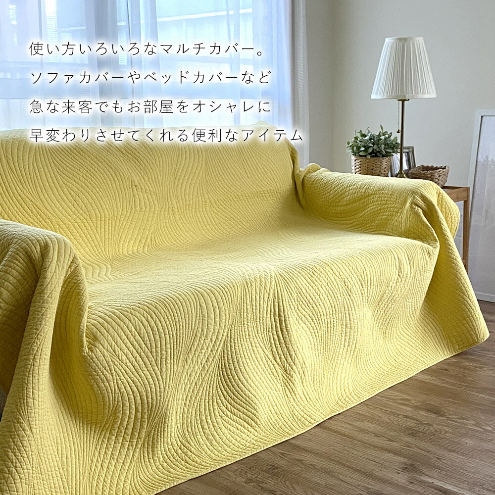 【買い回りポイントMAX7倍!〜9/23 1:59】カバー マルチカバー 約200×250cm ウェーブ柄 Lサイズ キルティング ソファカバー ソファーカバー ベッドカバー ラグ ラグマット マット ベビー マット 赤ちゃん 洗える 北欧 韓国インテリア 春 夏 オールシーズン 送料無料