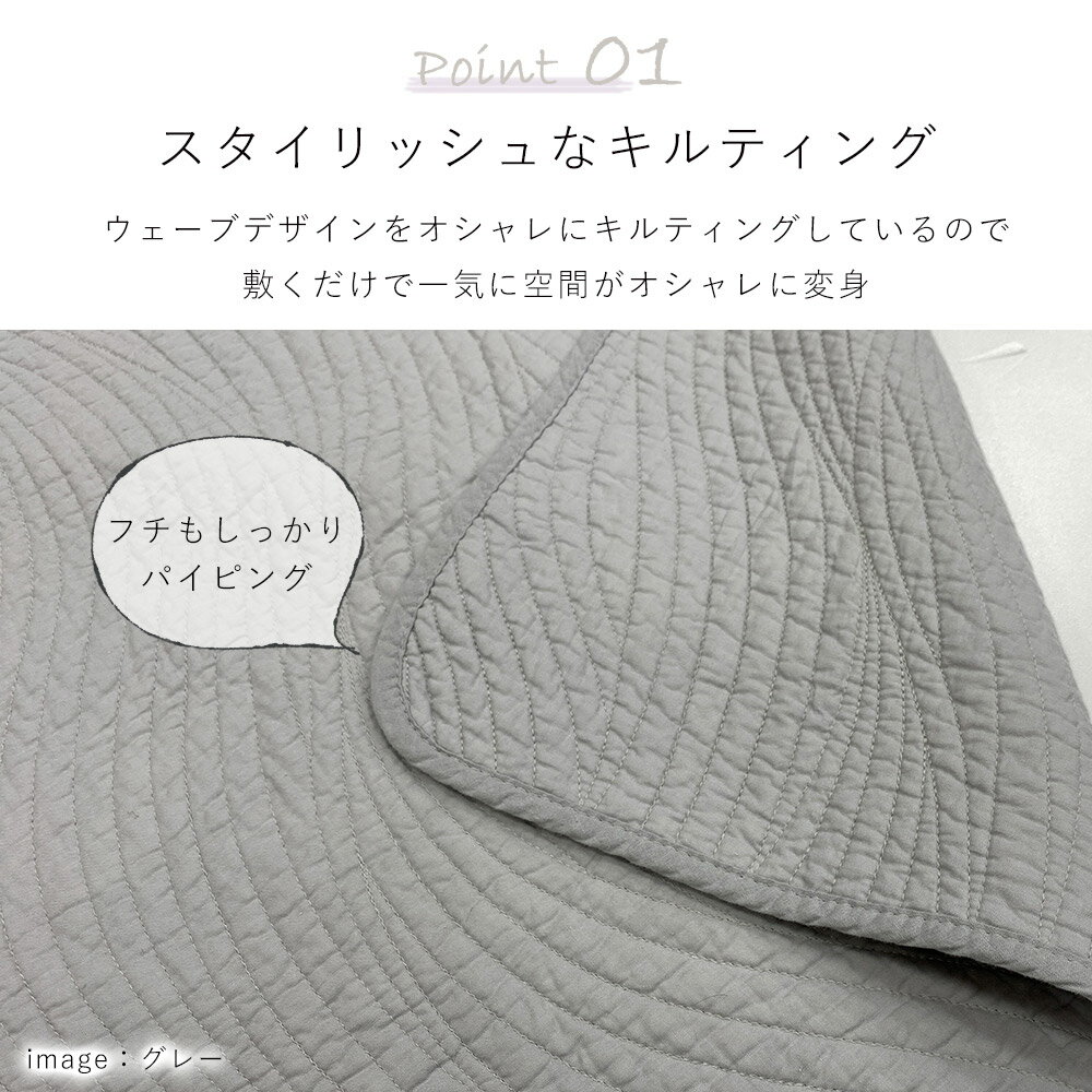 メーカー希望小売価格はメーカーサイトに基づいて掲載しています 商品詳細 商品名 綿100% ウェーブ柄マルチカバー サイズ Lサイズ 約200×250cm (キルト製品サイズ許容範囲+5%-3%) 素材 表側地:綿100%(中綿入り) 裏側地:綿100% カラー アイボリー/ベージュ/グレー/セイジ/イエロー 機能 手洗いOK、床暖房対応、ホットカーペット対応、オールシーズン快適 製造国 中国(日本で企画し中国で生産しています。