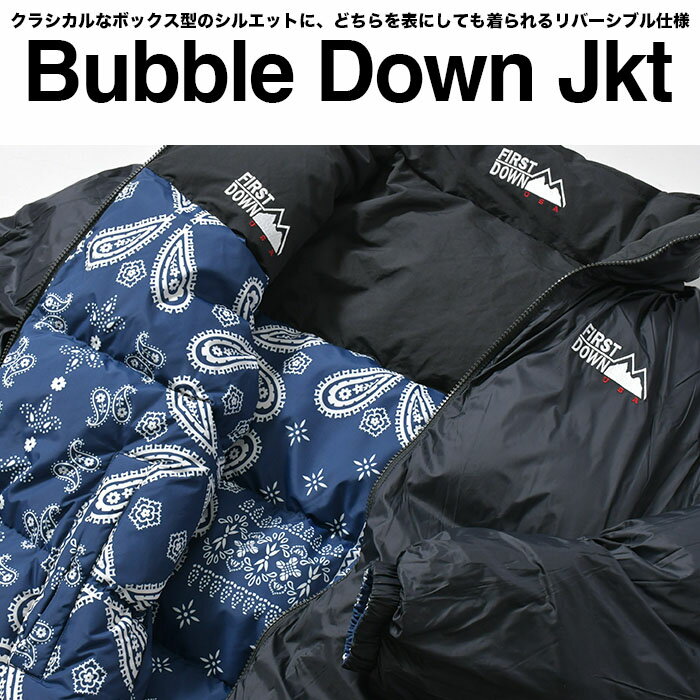 ファーストダウン ジャケット ダウンジャケット メンズ レディース FIRST DOWN バブルジャケット BUBBLE DOWN JACKET リバーシブル 大きいサイズ アウター アウトドア 防寒 撥水 軽量 ブランド ペイズリー バンダナ 迷彩 カモ F142500C